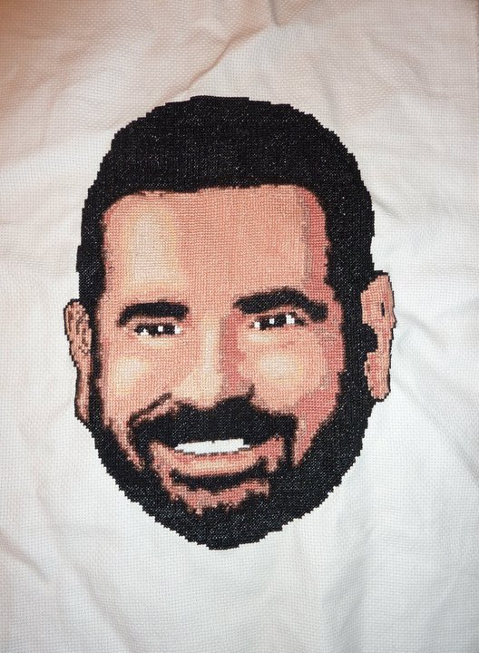 For some reason, I am beyond tired today so I will leave you with this hysterical cross stitch project of the dearly departed Billie Mays while I try to stop yawning! I found this on